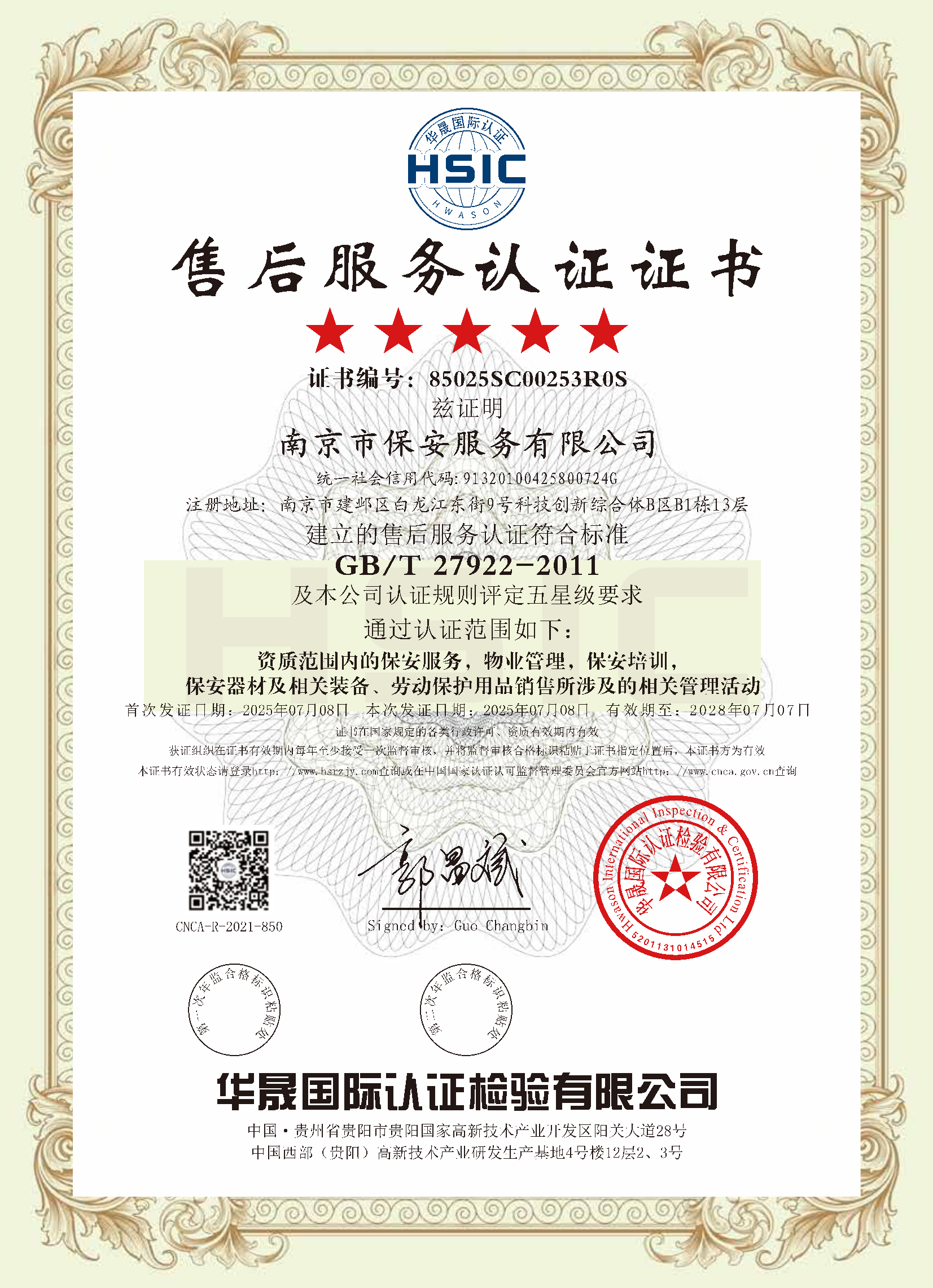 祝賀:南京市保安服務(wù)總公司通過(guò)企業(yè)誠(chéng)信管理體系認(rèn)證和企業(yè)社會(huì)責(zé)任管理體系認(rèn)證